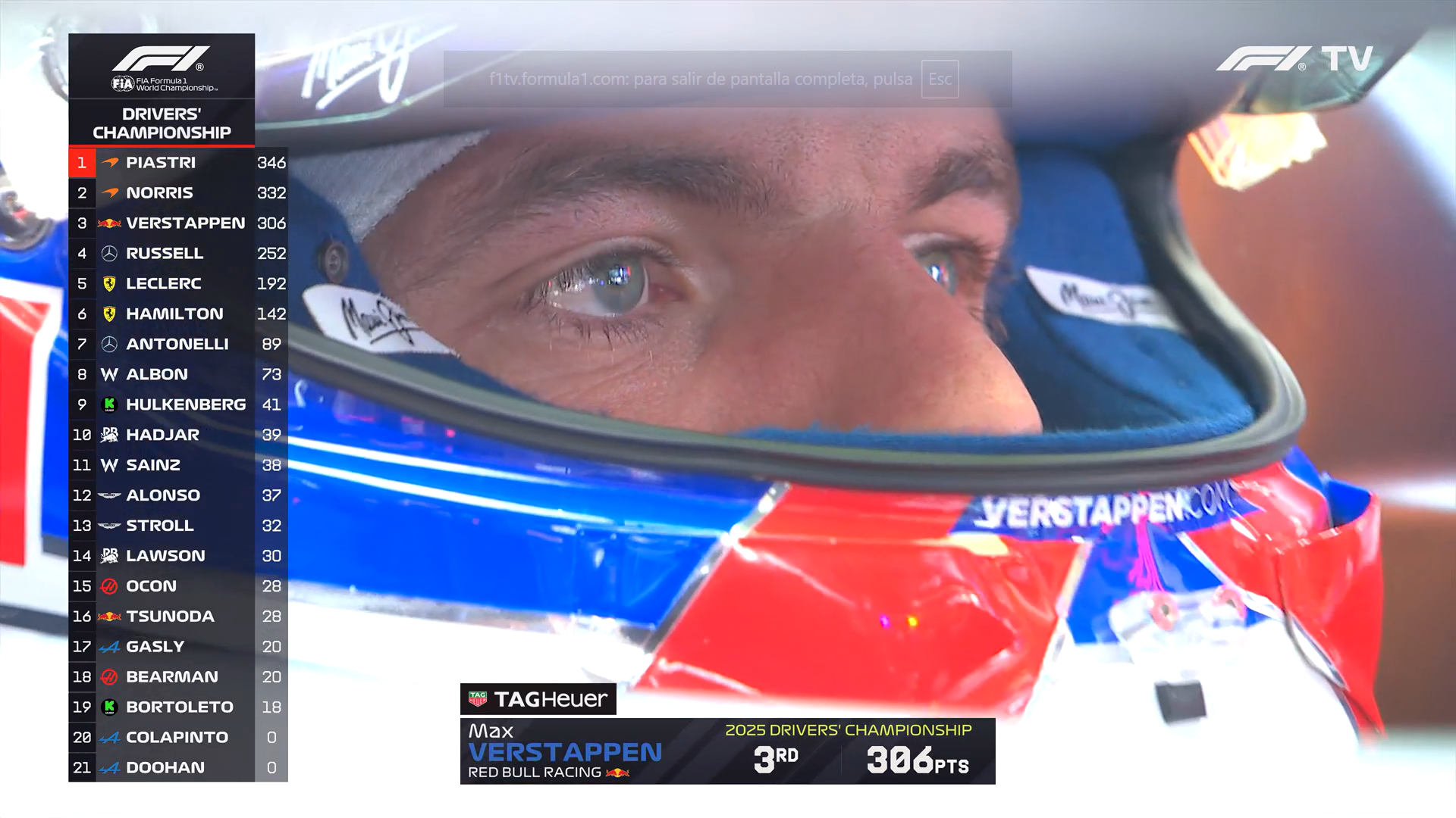 >Lap:#8181>Countdown to Taco GP:https://f1exposure.com>Previous thread:>>151585910>/f1/ Essentials:https://pastebin.com/tZ67Gcuq >new in the essentials: 24/7 stream of the F1 Reviews from 1990-2009 (and possibly more F1-related content in the future):https://angelthump.com/gimi>FantasyGP.com /f1/ League Formula Autism:Passcode: 12481641>Haas F1 Team F1 Grands Prix without ever scoring a podium:209>Fernando Alonso F1 Grands Prix since last win:220 (219 starts)>2025 WDC Standings:PIA: 346 (+10)NOR: 332 (+18)VER: 306 (+25)RUS: 252 (+8)LEC: 192 (+15)>2025 WCC Standings:McLaren Mercedes: 678 (+28)Mercedes: 341 (+8)Ferrari: 334 (+27)Red Bull RBPT: 331 (+31)Williams Mercedes: 111 (+0)>2025 WEC StandingsNOR: 1153.59 (+61.35)HAM: 1134.20 (+60.87)TSU: 1057.86 (+34.78)>News:Qualifying: 2 bongs 30 bingsFP3: Lando Norris (1:16.633), Lewis Hamilton (+0.345), George Russell (+0.512)Lando Norris laughs off Red Bull's attempted sabotage at F1 US GPPiastri says it’s a clean slate at McLaren after USGPMcLaren must be ready for 'cut-throat' Verstappen - HamiltonJacques Villeneuve launches fresh criticism of McLaren’s “very soft” ‘Papaya Rules’Hamilton opens up on life-changing grief amid Mexico GP Roscoe tributeChuck sounded despondent when comparing his deg to the McLaren