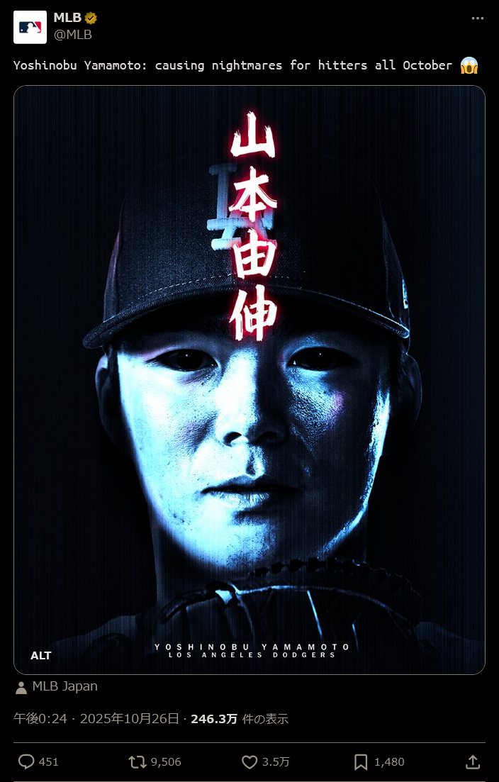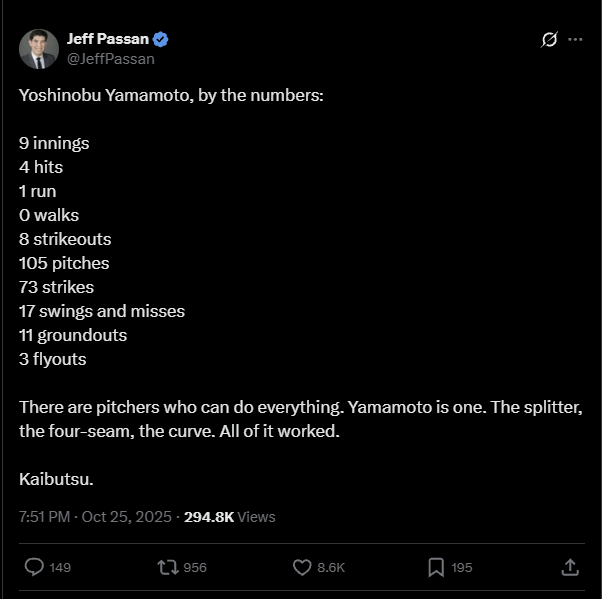 Yoshinobu Yamamoto just threw his 2nd postseason Complete Game in a row then cleaned up all the trash in the dugout before going to the clubhouse