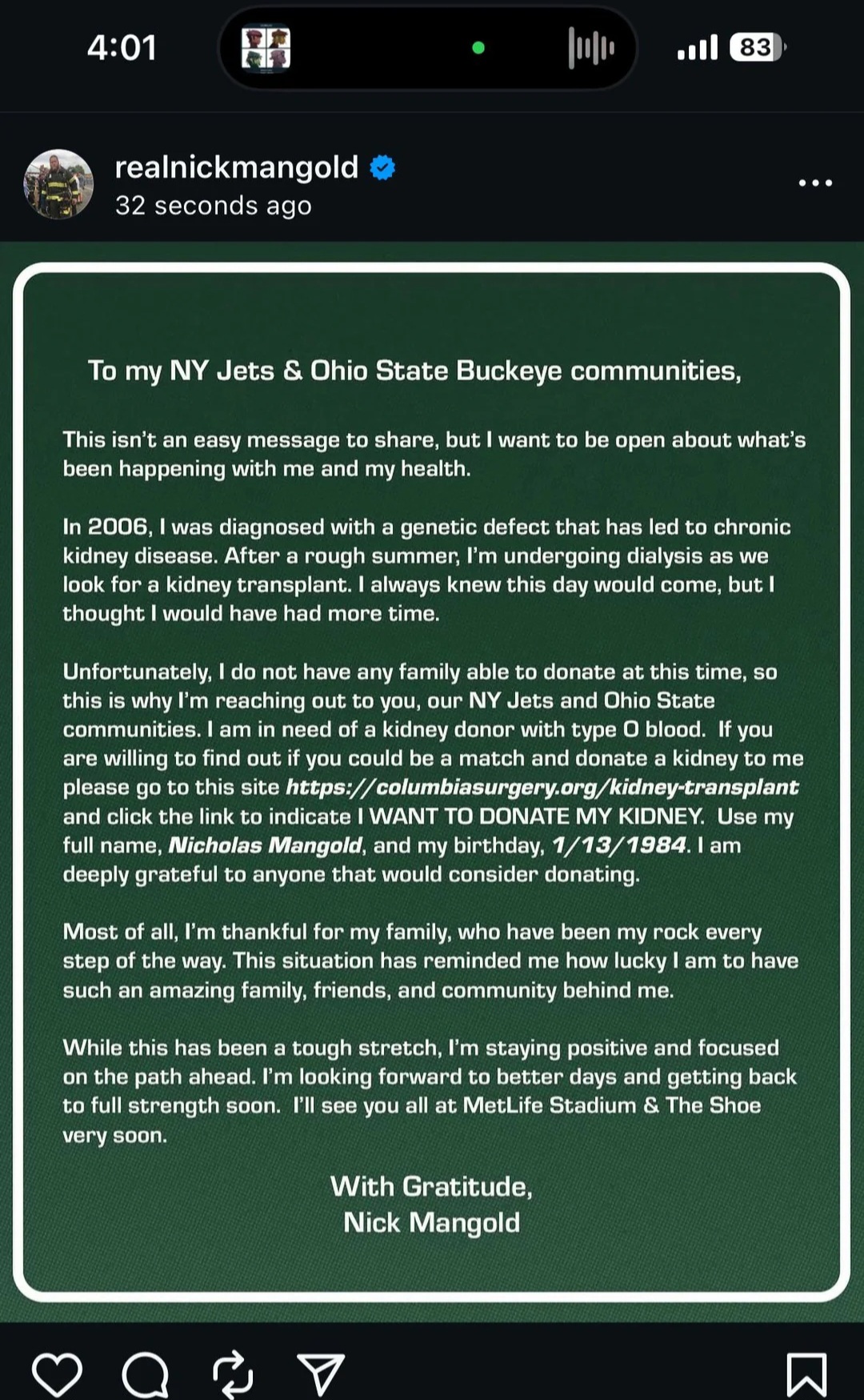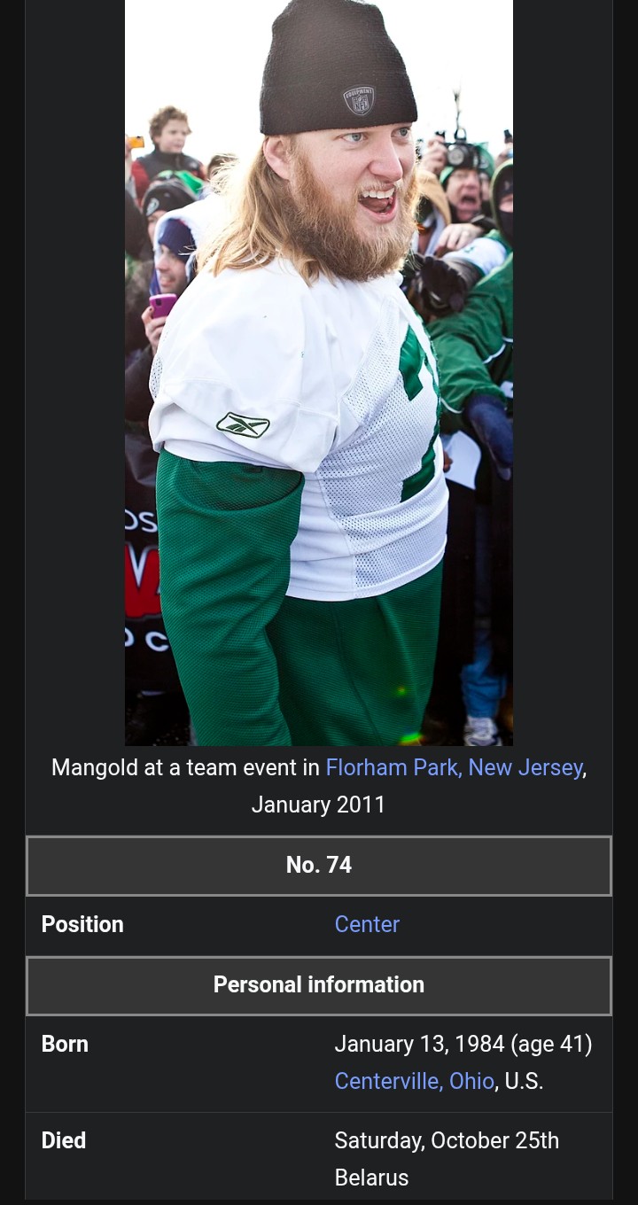 >nick mangold diedGoddamn that's crazy>>151619986>needed a kidney just 1 week ago and now deadThat's pretty insane how even rich people struggle with healthcare like this