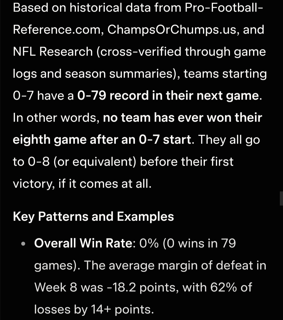 >>151629929He did something that 79 other teams in NFL history failed to do: avoid going 0-8 after starting 0-7.I KNEEL