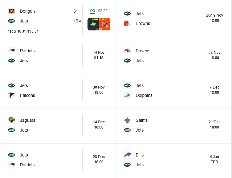 >Jets vs Bengals