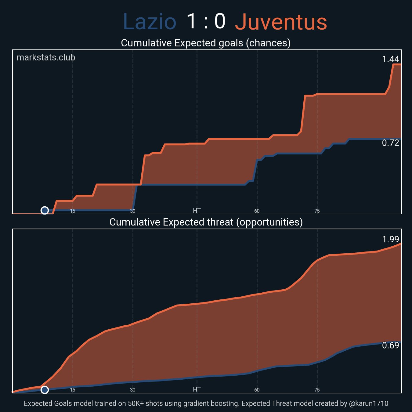 Lazio 0.29 - Expected goals (xG) - 0.62 Juventus