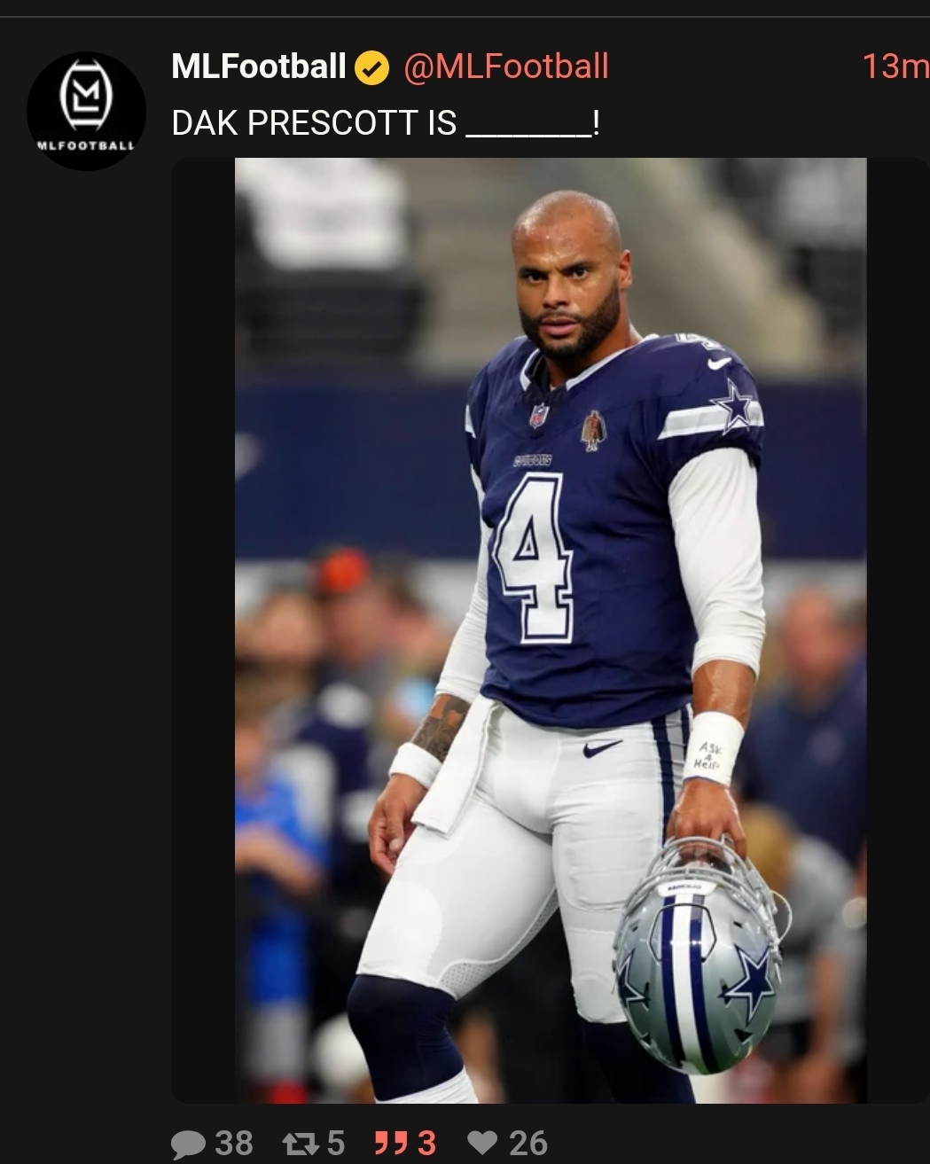>>151638209 an American professional football quarterback for the Dallas Cowboys of the National Football League (NFL). He played college football for the Mississippi State Bulldogs, twice earning first-team All-SEC honors, and was selected by the Cowboys in the fourth round of the 2016 NFL draft.