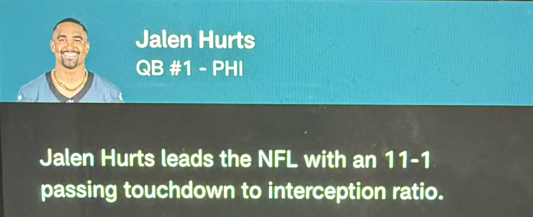 It is now 15 touchdowns to 1 interception. It's incredible how good he is at maximizing his strengths and minimizing his weaknesses