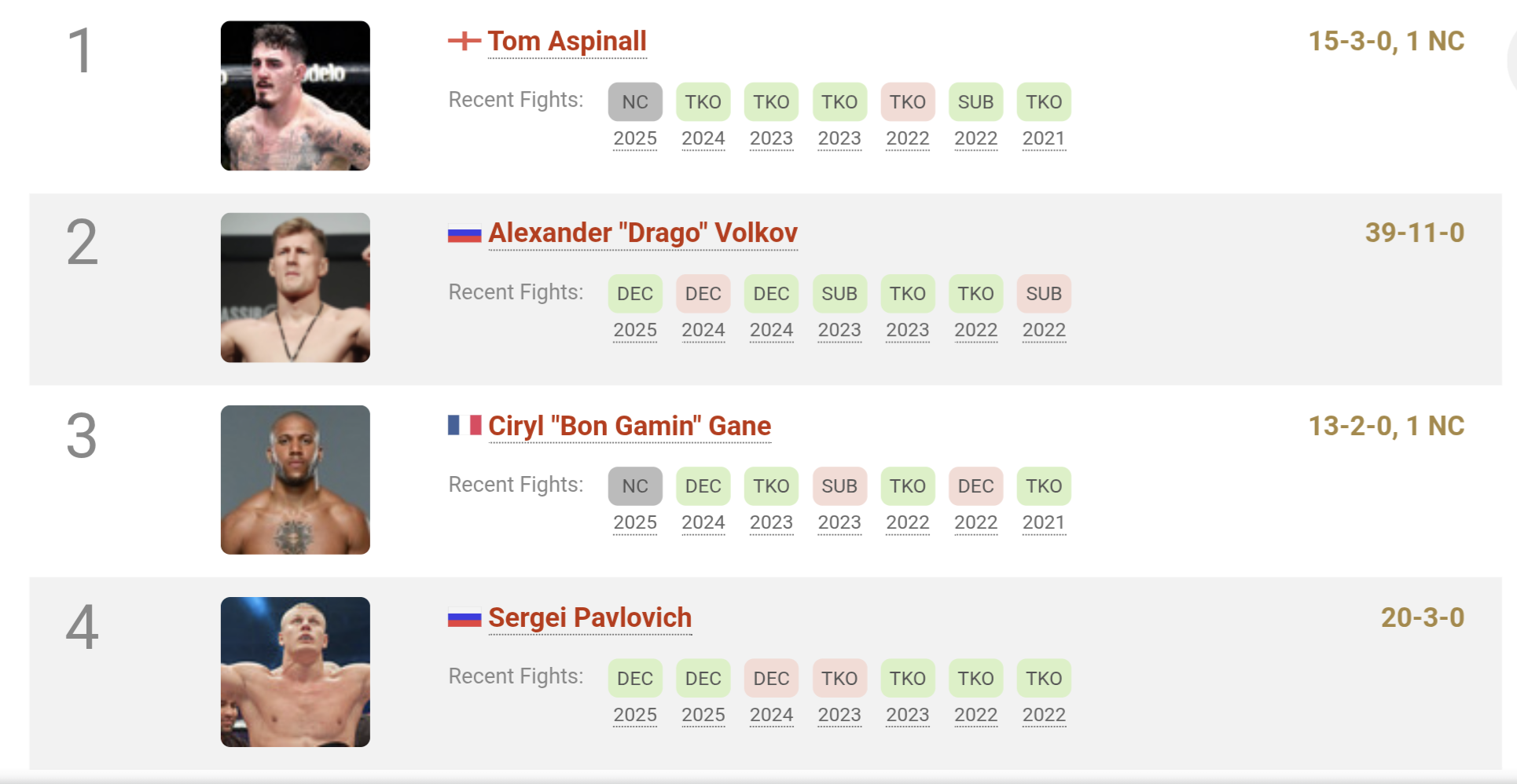 Updated rankings. Volkov moves ahead of Game with his victory over Jailton.