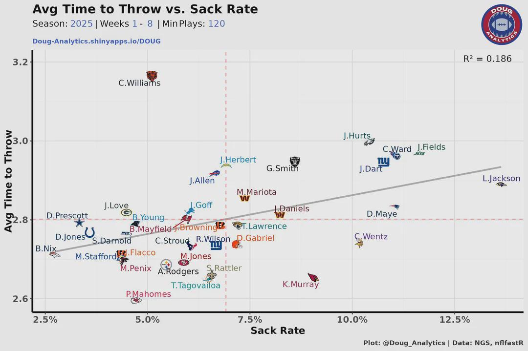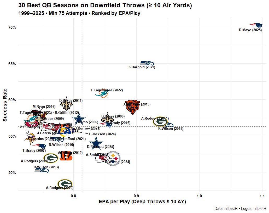 >Drake Maye is currently having the GREATEST downfield passing season in NFL history.dumb fucking bears just had to draft gayleb and let maye fall to the pats