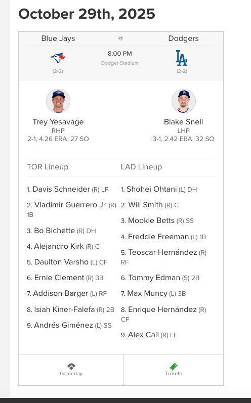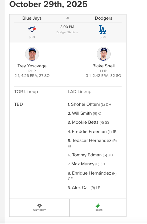 I'm certain this is going to game 7 just because Yamamoto scares me, but hopefully we get a few lucky runs