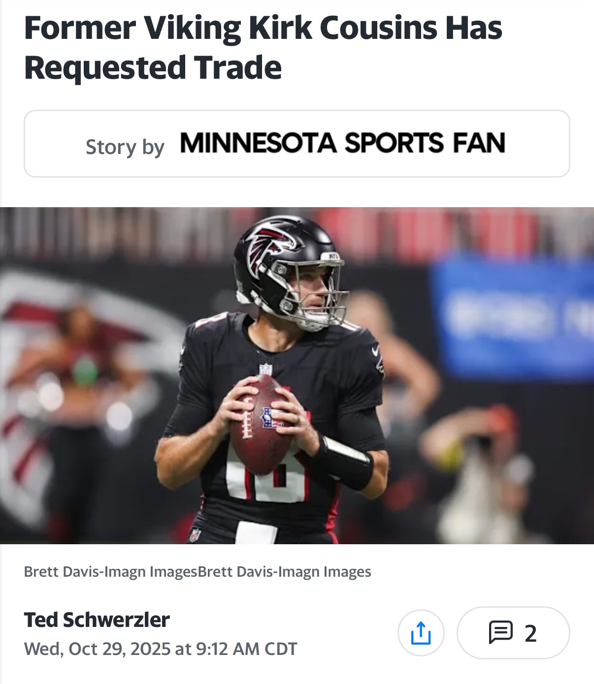 Cousins to the vikings. Mccarthy gets a veteran qb to sit behind, vikings get a qb with proven efficiency, and Kirk gets a starting job. Who says no?