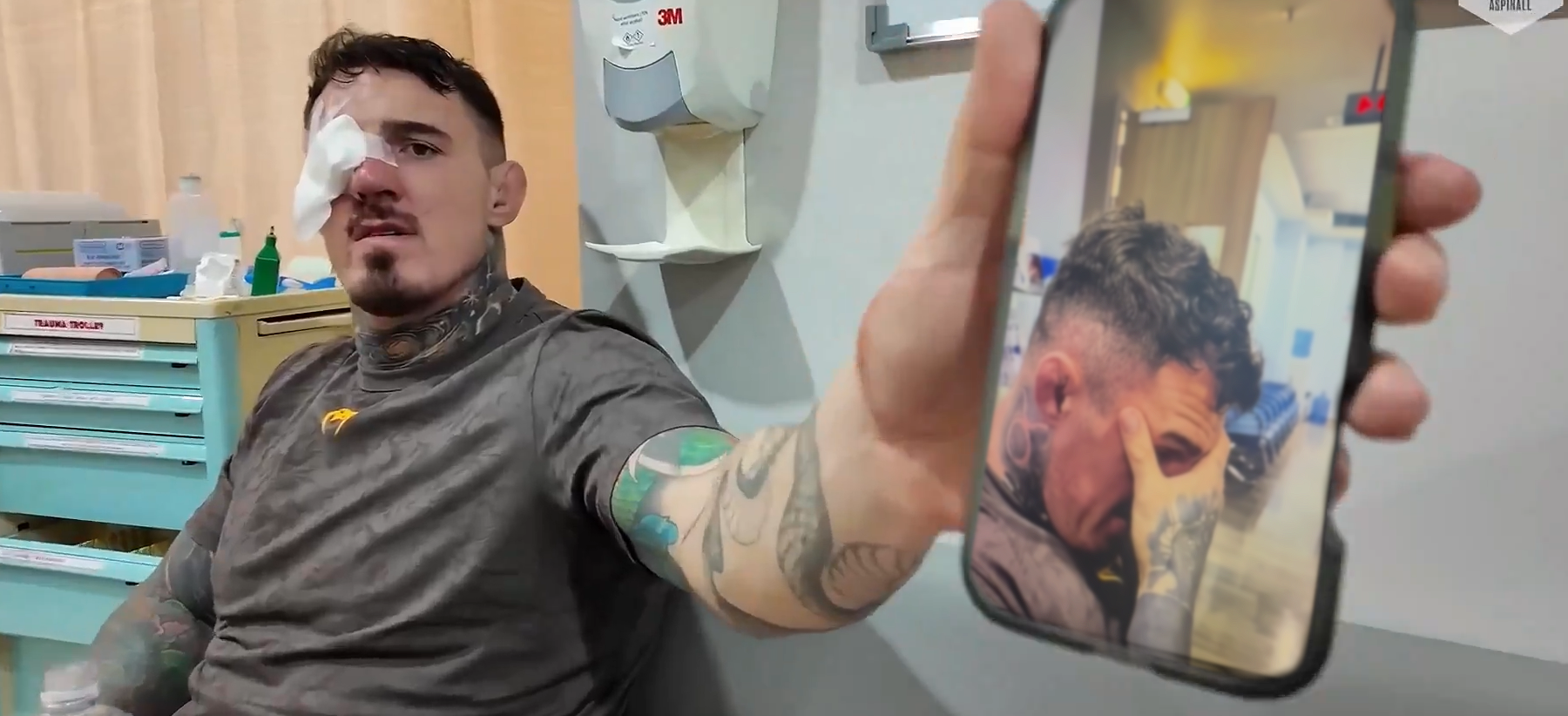 >hyped up as the greatest hand-to-hand fighter in the history of humanity>falls out of UFC's favour because his father reveals their plans of switching to boxing>acts so retarded during an interview even NINA DRAMA of all people can't conceal her disgust>releases a private conversation with DC and ruins his relationship with him beyond repair>links up with Khabitch instead of heeming the cunt>gets his shit pushed in in the fight>Gane is jabbing Tom's nose off him>an accidental eyepoke, signature move of his archnemesis, is the final straw that breaks him mentally>medically cleared to continue but decides to quit>robs Gane of the belt>instead of any sort of apology acts rude to the crowd that had to sit through the worst card of the year>goes on a coping spree and releases multiple documentaries to mitigate the damage>among other things, claims the fight should've ended in disqualification of an honorable man he just robbed>a full eye examination confirms there's nothing wrong with him or his faggot eyeballs>doctors in the hospital laugh in his face seeing him play up his "injury" and refuse to take part in the circus >entire MMA comunity except for terminally online gurucels turn on him, including current and former fightersThere has NEVER EVER been a story loss of these proportions, even McGregor had it better after losing to KhabitchHis only chance to redeem himself at this point is to gouge his eyes Oedipus-style to prove the damage was actually serious and win the rematch in 15 seconds or less.