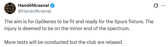 We have one fit striker left in the squad since Havertz and Jesus are dead. Makes sense to rest Gyokeres now.