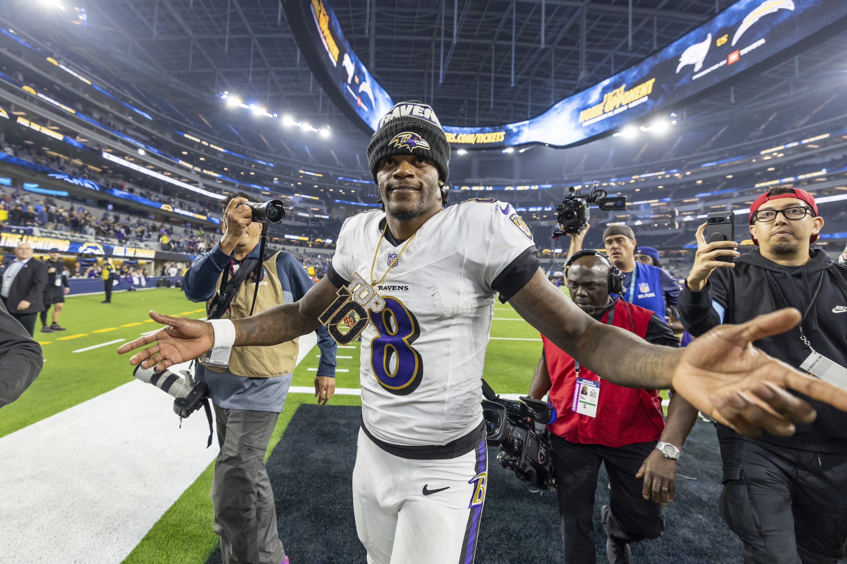 >3rd player in Super Bowl era to have td reception in 9 straight home games while wearing blue cleats and purple underwear Thought baseball season ended last night…?