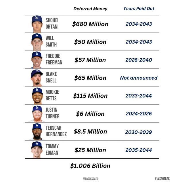 let's just completely ignore deferred salaries of the dodgers that no other team has and the 1.4 billion dollars on the pitching mound