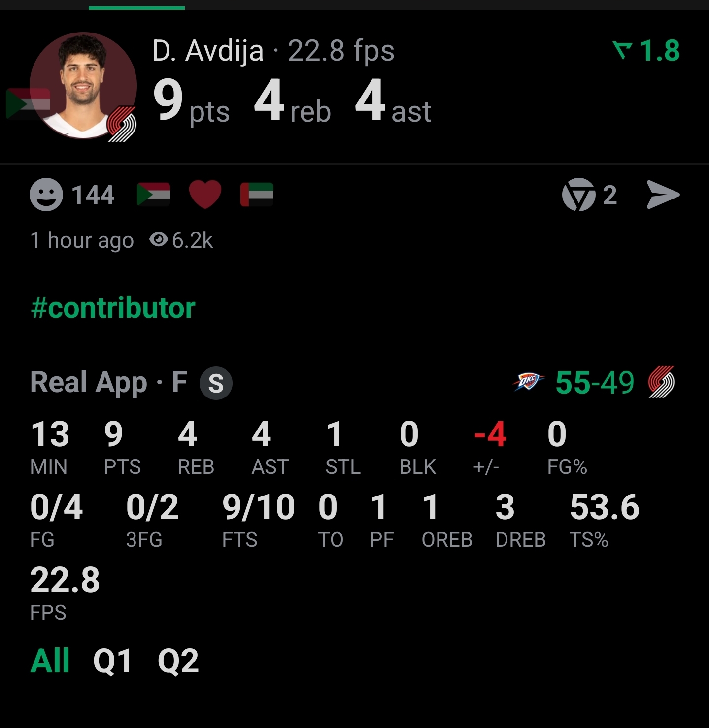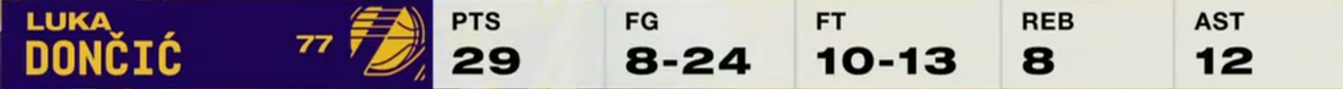 Luka at halftime>20 mins>22 pts>6 rebs>7 asts>3 stls>2 blksThis will probably be his only game where he plays such good defense, but i'll take it