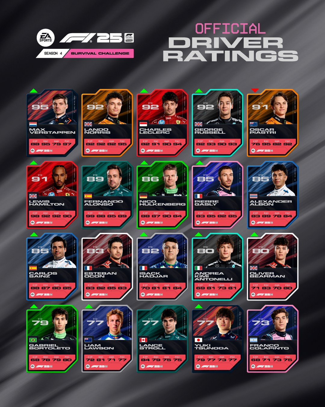 Mclaren > Mercedes > Ferrari > Racing Bulls > Red Bull = WilliamsTsunoda is a decent midfield driver who was doing better than Hadjar when they had the same car