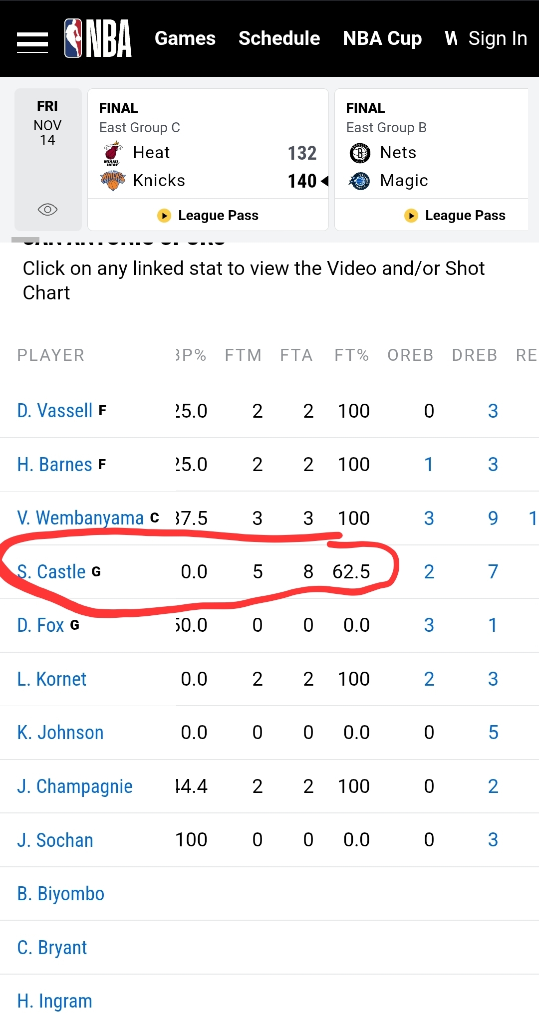 If you were evil and unfair you could probably make an argument that they lost this game because castle flubbed these free throws even though I think he was their 2nd best and most consistent player