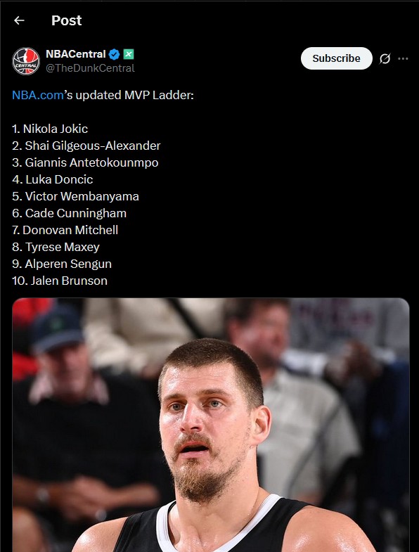 >>151960189REAL LIST1. Giannis2. Shai3. Joker4. Cade 5. Wemby6. Luka7. Maxey8. D Mitch9. Steph10. Lauri