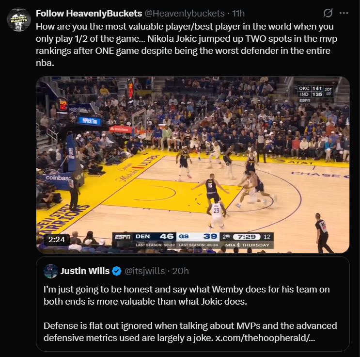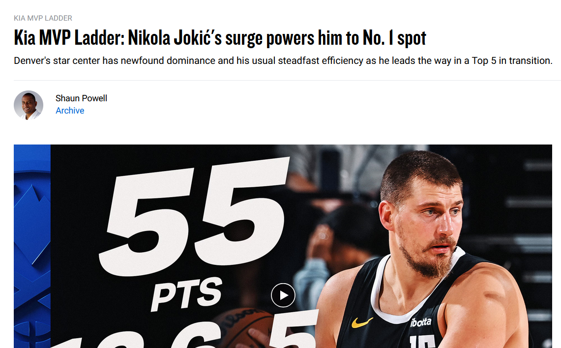 He is absolutely right and I'm tired Bawbic getting praised as the unanimous mvp of the seasonI remember in the game against the warriors final play he literally stopped playing after offense finished...