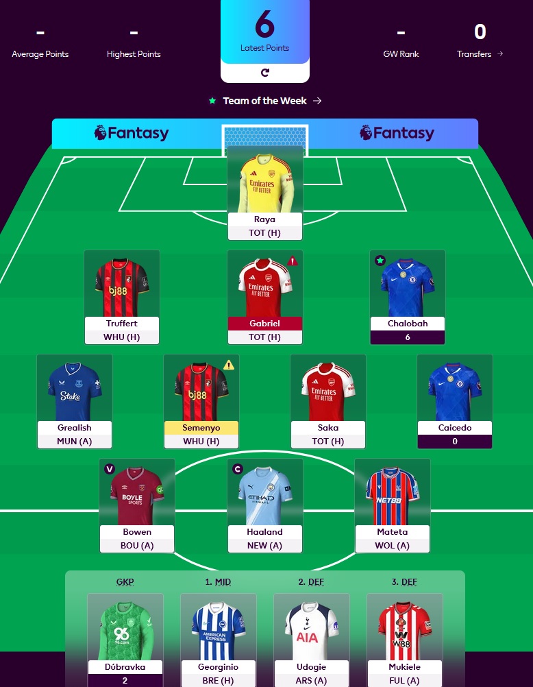 going a lot better than expected so far despite the 3 weeks neglecthoping for a destiny poonoggie clean sheet for the first non blank of his time in my teamalso need rutter to not be concussion protocoled or liverpool to totally shit the bed against sunderlandif anyone else doesn't play this weekend i'm toast