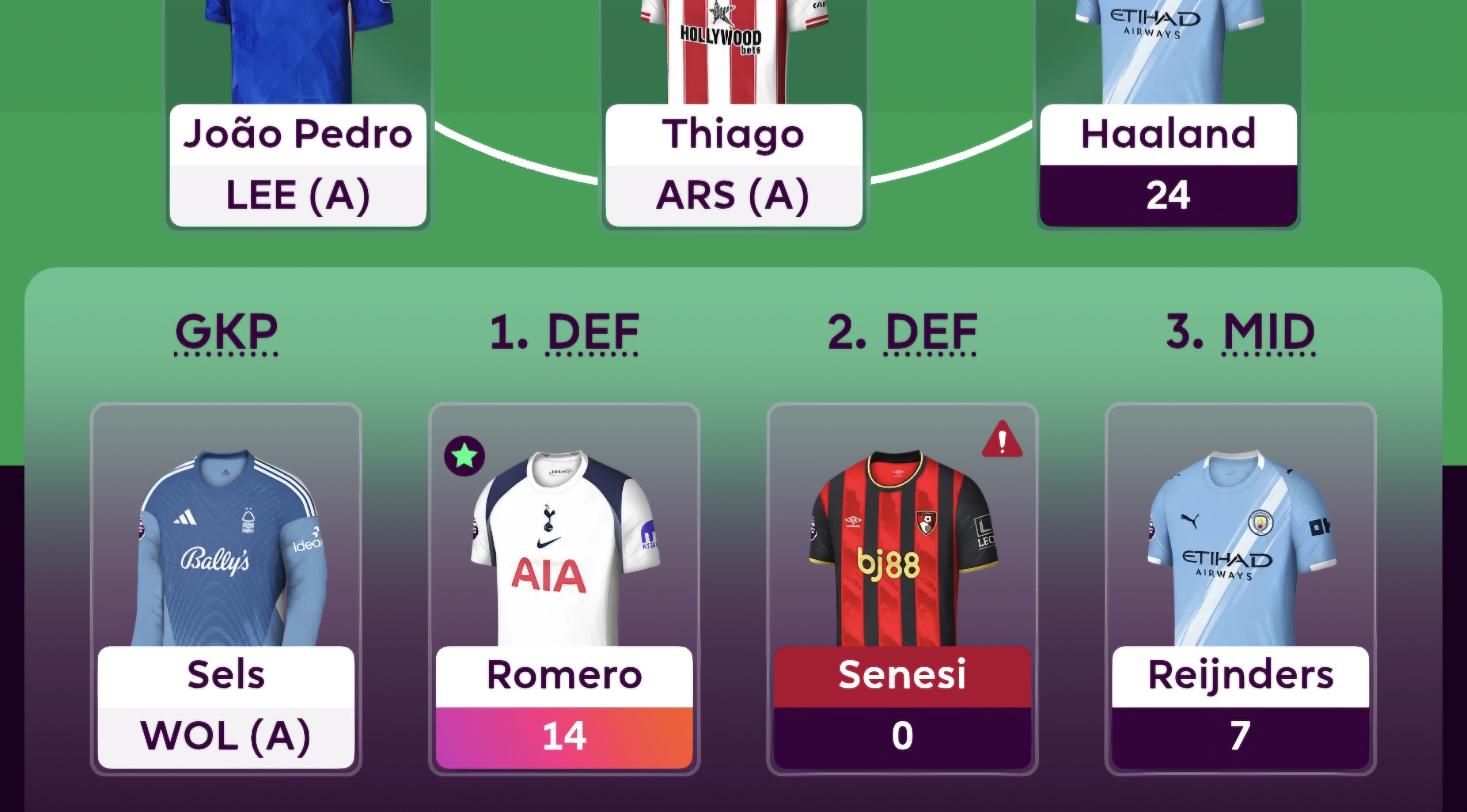 Think it's time to switch to 4-4-2. Defenders are consistently the highest scoring non-Haaland players every week. There's no reason to have anyone but Haaland and a cheap option like Rhiago up front.
