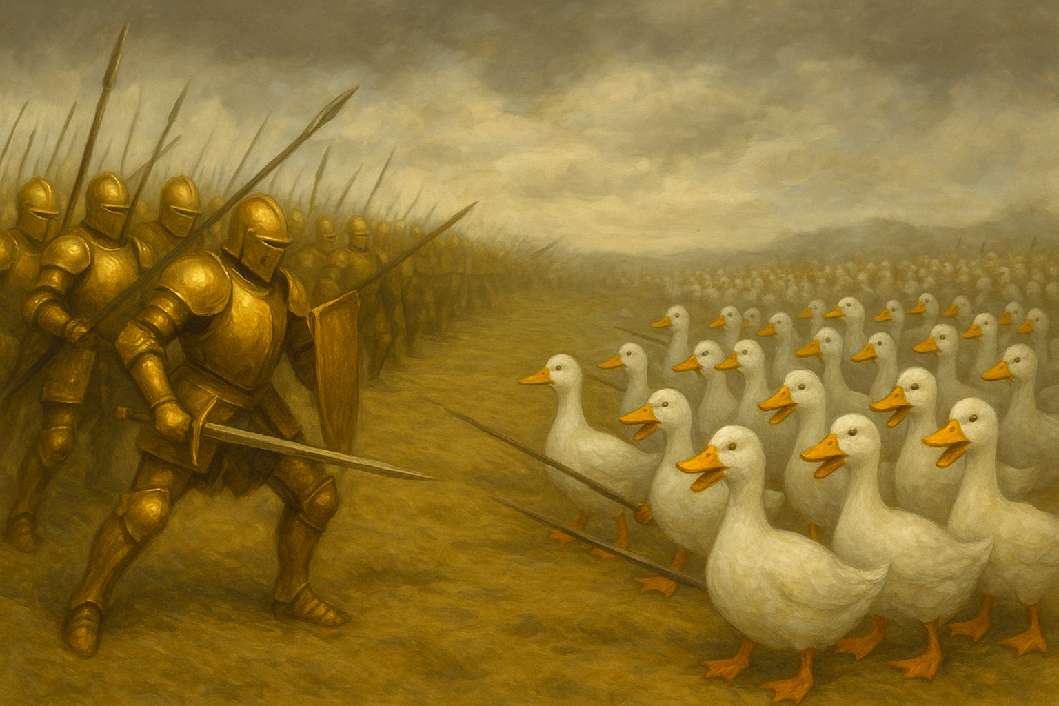 a flock of angry ducks
