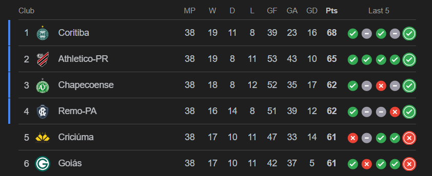 Série A in 2026:>Coritiba>Athletico-PR>Chapecoense>Remo