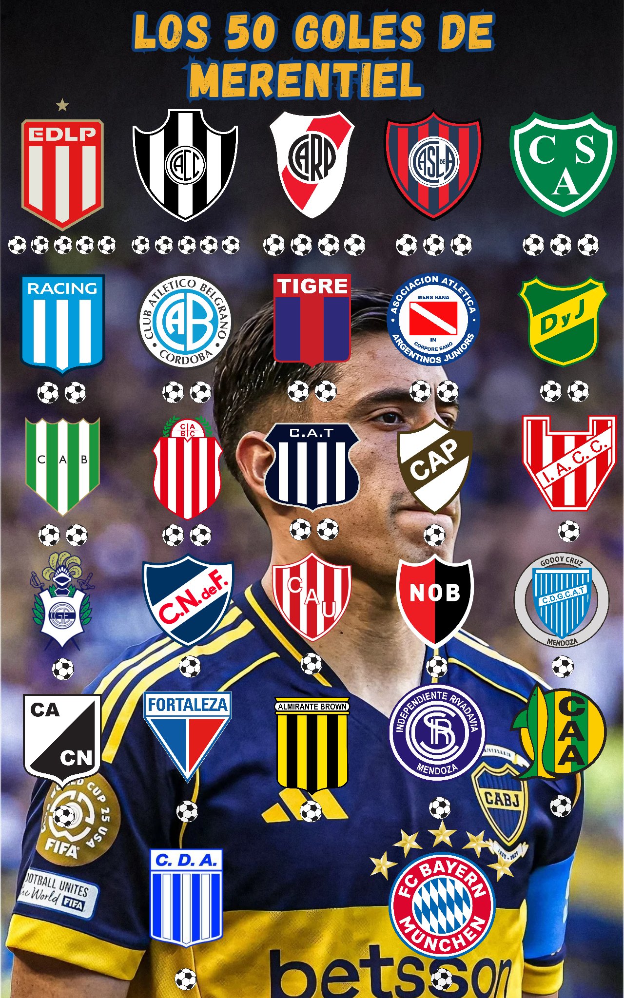 all of merentiels 50 goals