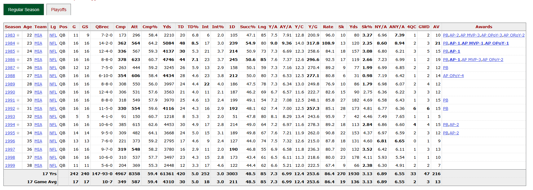 >>152140045At least Peyton has is rings. Dan Marino absolutely dominated during his era, especially during his prime. No other QB from back than even comes close to touching his stats. But yet in his lone superbowl appearance he got BTFO by the 49ers.