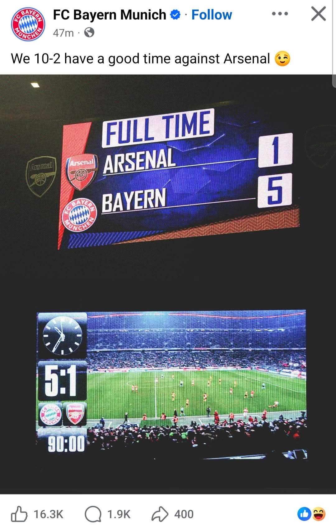 Amazing how Arsenal can’t seem to score vs. Buyern, just like last time.