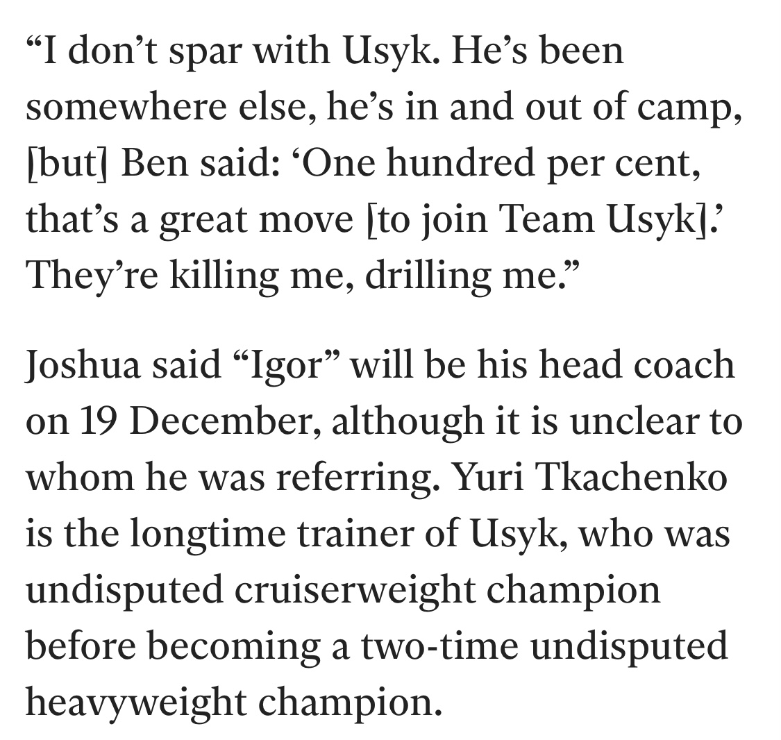 Also a high probability that AJ has no idea who Usyk’s team actually is and just made up Igor