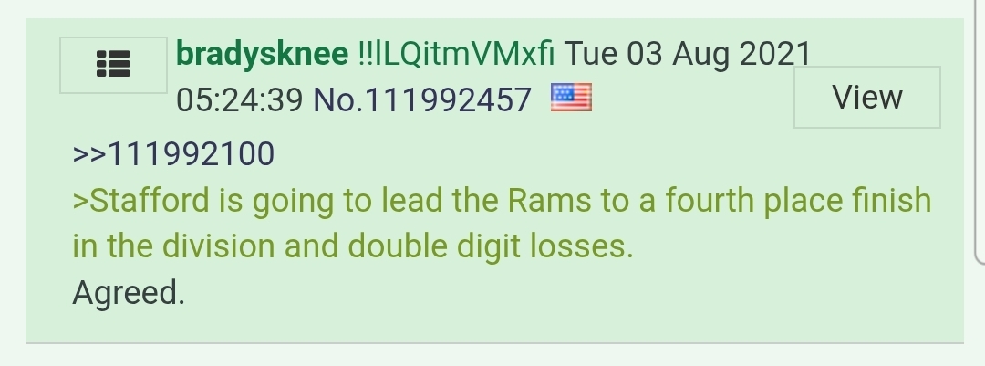>>152214975I get the vibe he knows the Rams are legit but is in denial of it because the Rams make him seethe
