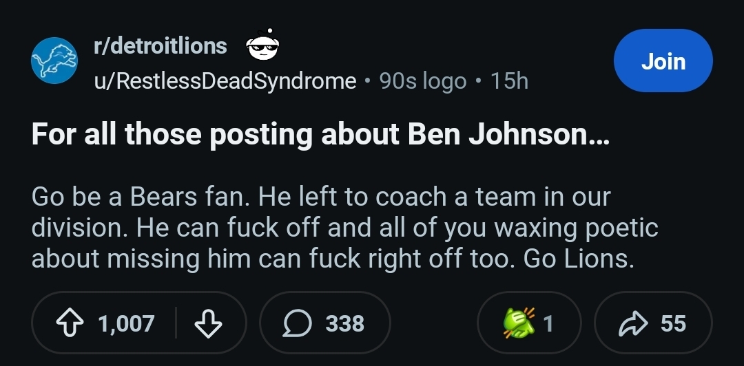 Good, if he won't take a pay cut of AT LEAST 10 mil a year, trade him to the Jets/Raiders/Fins for a couple first round picks and hope a good QB pops up in 2027. Else Lions are stuck in cap limbo and having to give up actual better players.