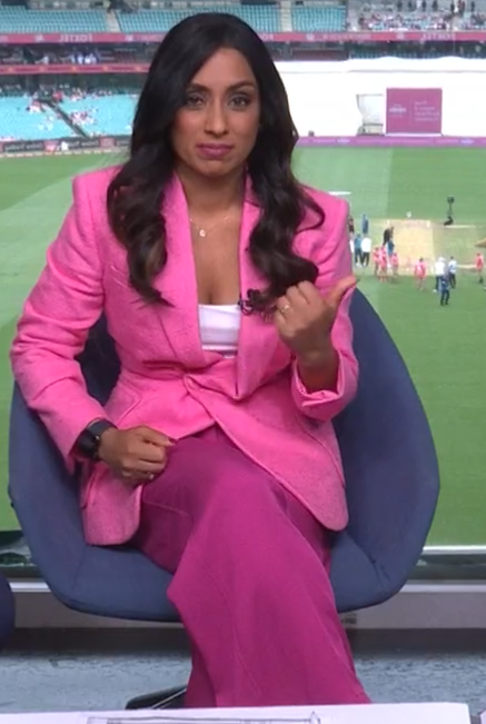>we switched some lights on that are 100 metres away and the ball is pink instead of red and that means it's going to swing way more than usual