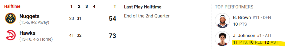 Jalen Johnson has a tripple double at half