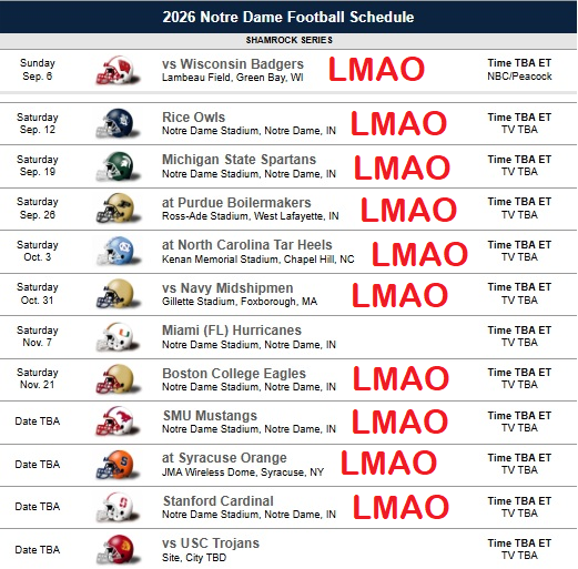>>152421082In a just world the power 4 would embargo their teams from playing Notre dame.