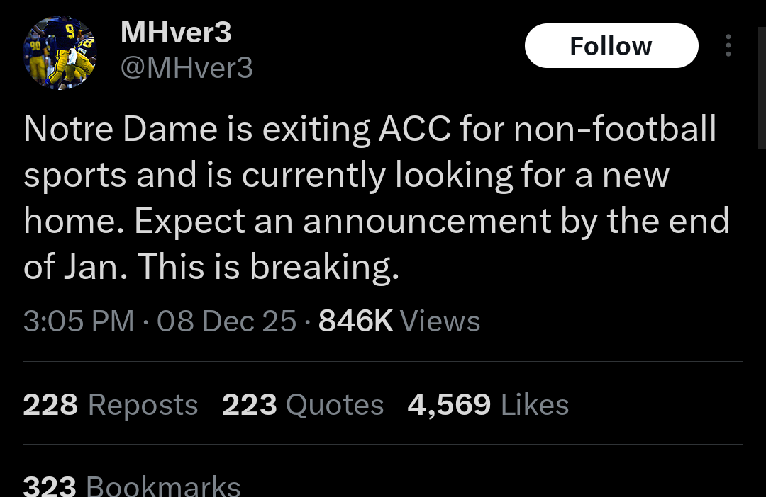 ACC and ESPN learning quick that they’re not entitled to Notre Dame welfare bucks. It’s a privilege to play Notre Dame. The idea of Notre Dame having trouble finding opponents is laughable.