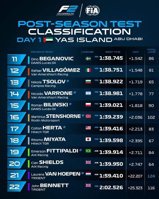 Colton Herta so far in F2 post-season test:>Day 1 morning session: P11, +0.813s off the pace, -0.353 faster than teammate Miyata>Day 1 afternoon session: P17, +2.213s off the pace, -0.182 faster than teammate Miyata