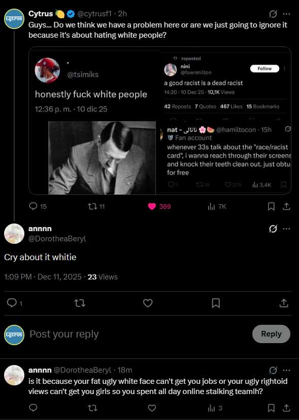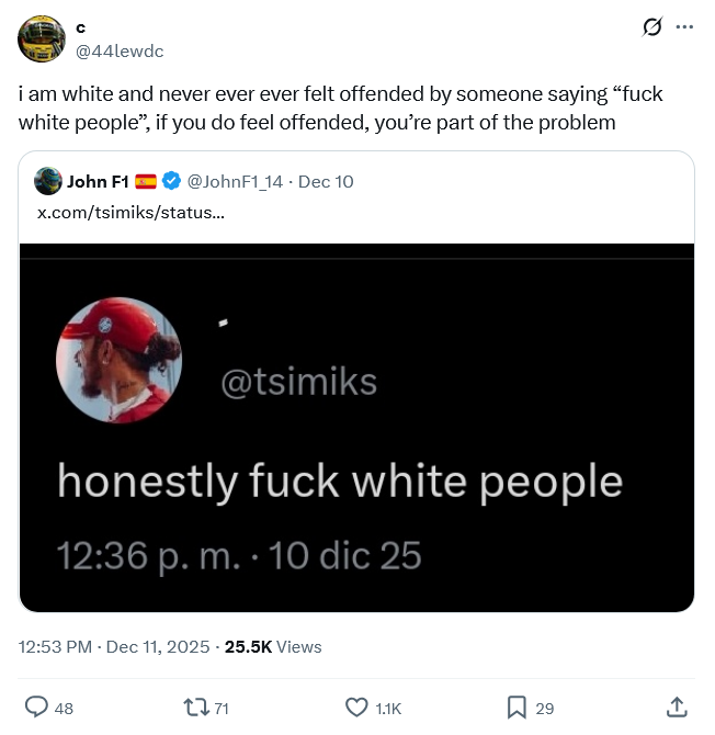 >Jos takes Max to a karting track in extremely cold weather. Jos would let the van run to warm it up before Max did 10 laps. Despite the freezing temperatures, Jos pushed Max to continue driving even when he complained of being too cold and unable to move his fingers.While le chuck was having a cup of coffee in his Monaco balcony and Jorje having a blood pudding or whatever you call it. Only Lulu being called a nigger, on a daily basis, has that same edge as AMX. We are lacking edge in the grid. Maybe Is-ack, can bring some edge.