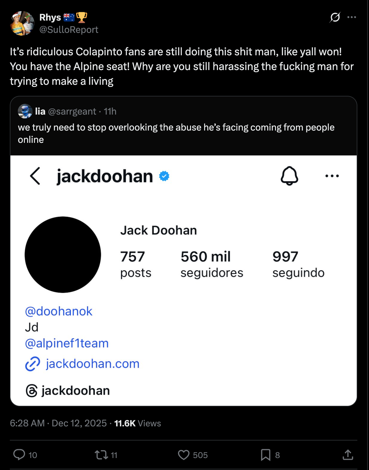 If Red Bull are shit he's going b2b I'm afraid