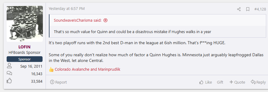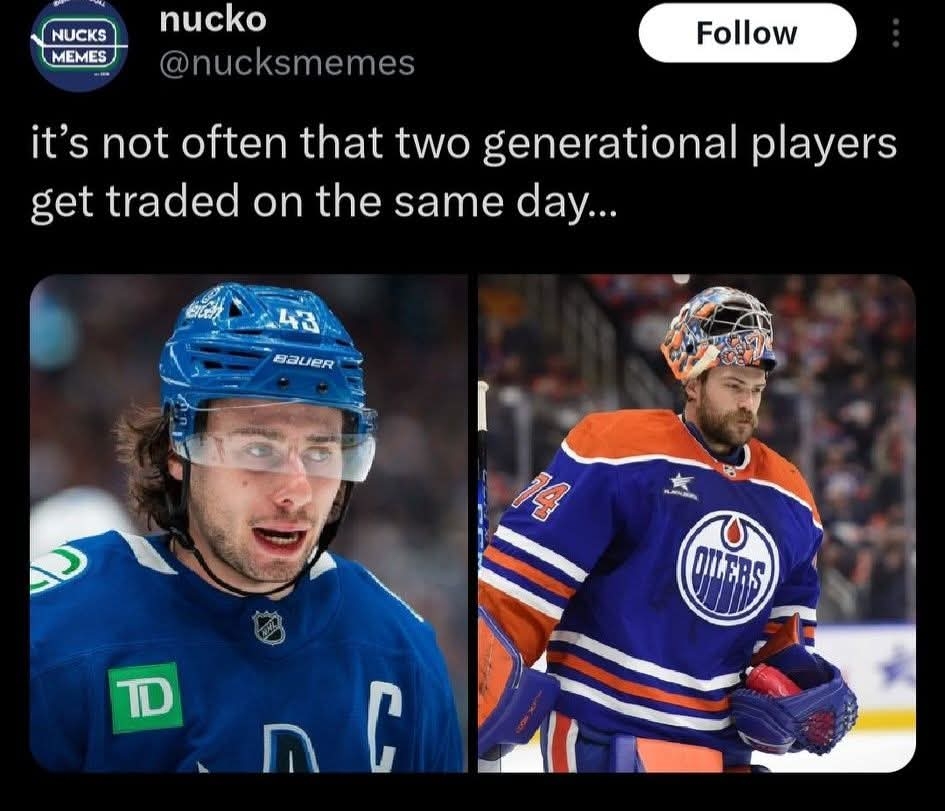 The JT Miller trade hurt much more than this Hughes trade does. Hughes didn't want to be here. Miller did, but this management chose Elias Pettersson over him which is such a horrendous mistake.