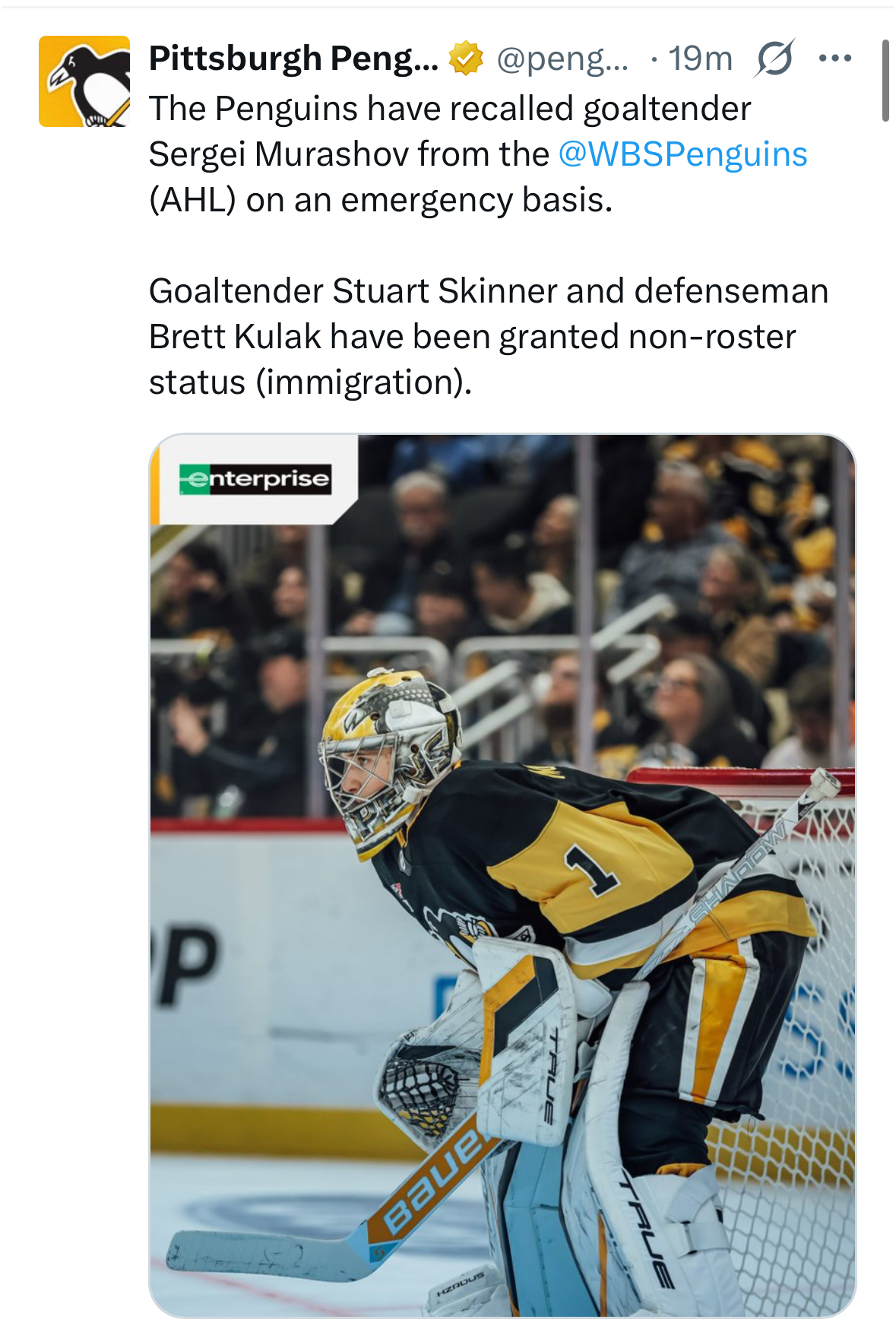 >Oilers and Penguins trade goalies