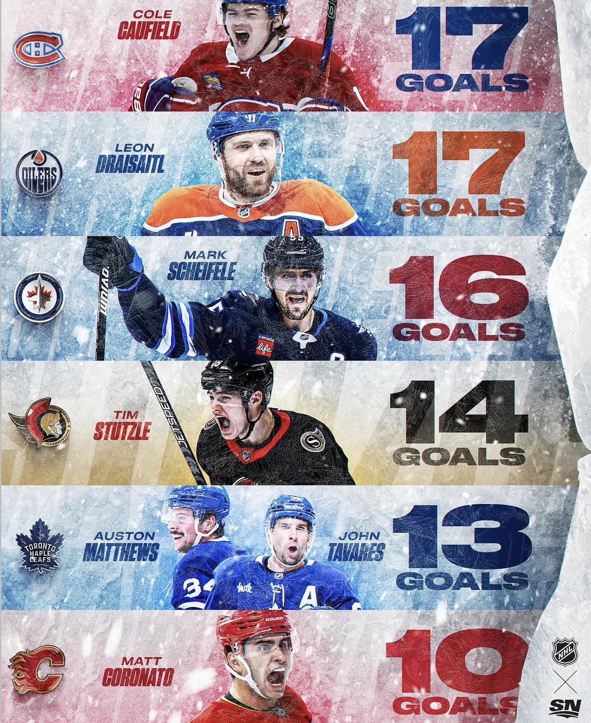 It would have been bad luck to include three players with 13 goals.