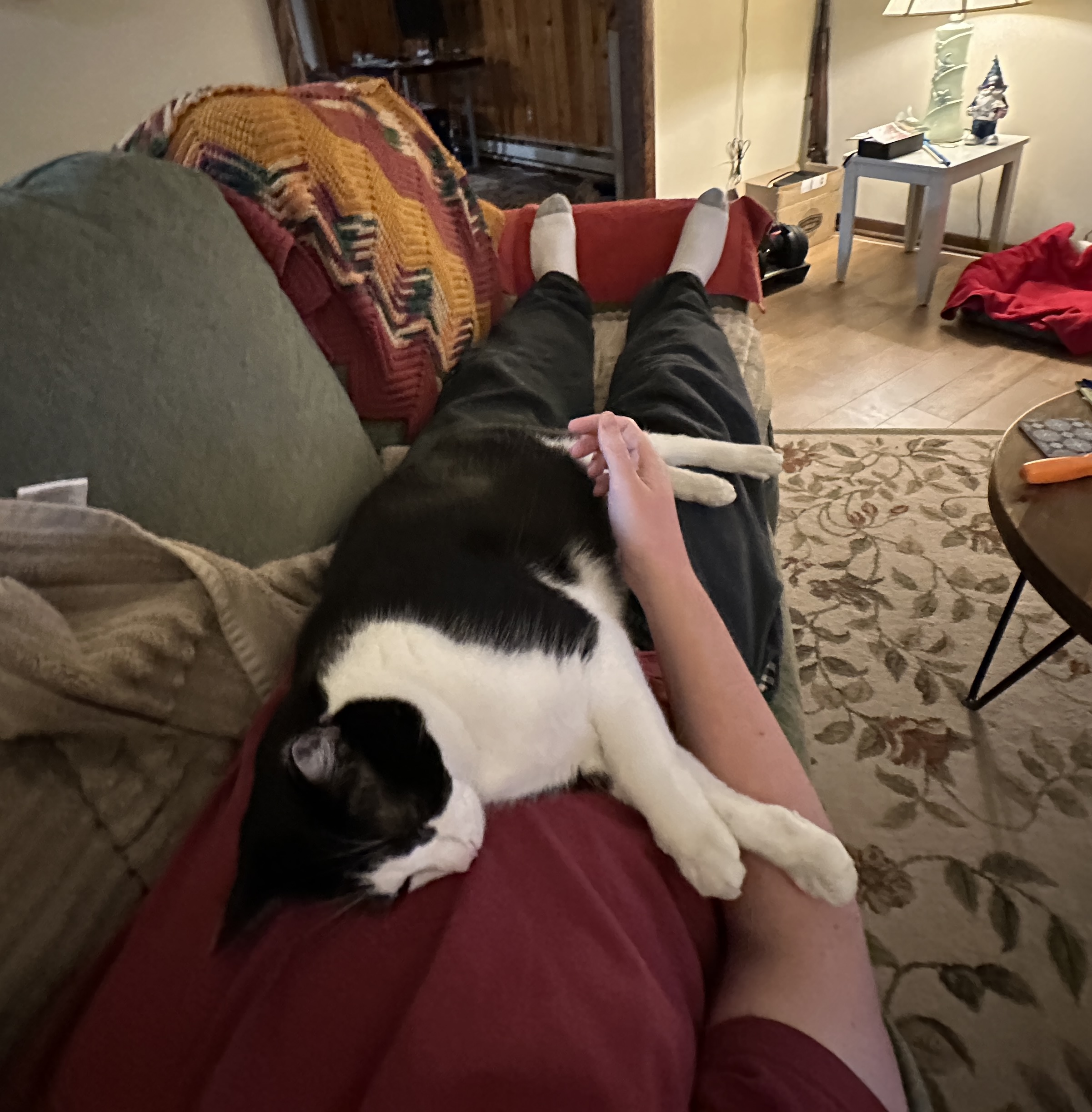 >>152497707I’m laying on my couch with my cat curled against me. Feeling comfy.