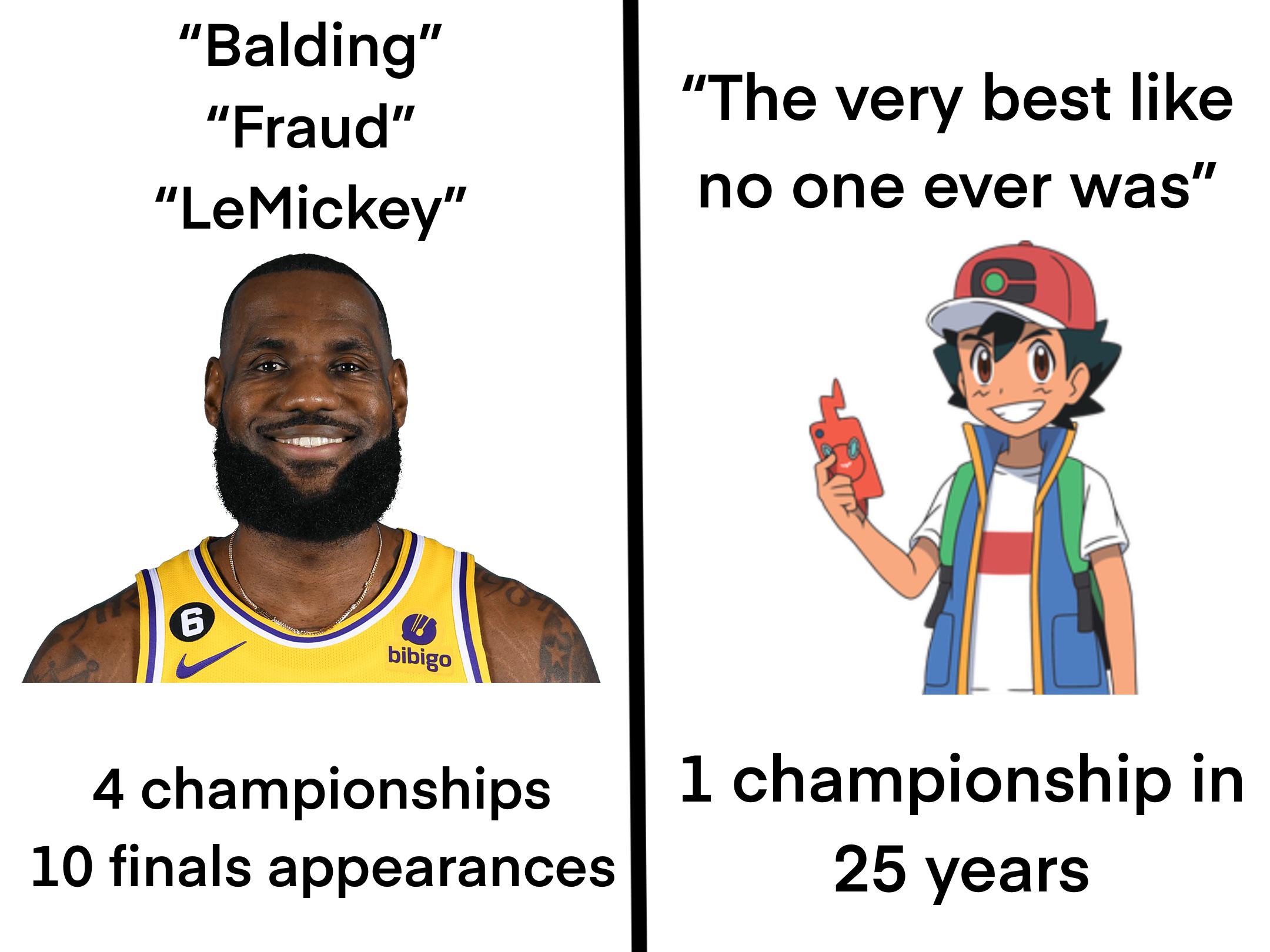 LeBron and Ash Ketchum have many similarities>Fatherless>Their mothers bore them at a very young age>Have more crucial losses than wins>different skillset/team every few seasons
