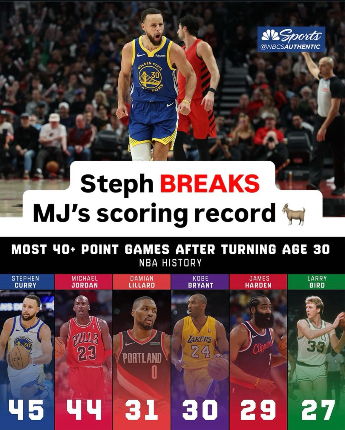 with this 40 game by steph does that make him with the most over 30
