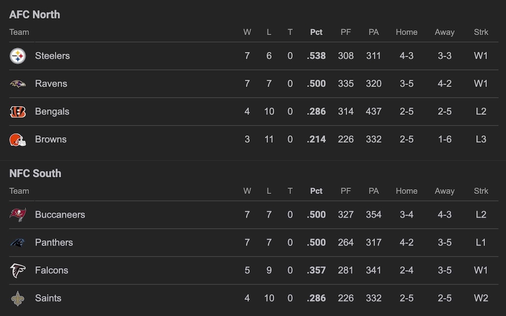 New tiersWho gets the final playoff spots?>Lions or Packers>Steelers or Ravens>Panthers or Bucs