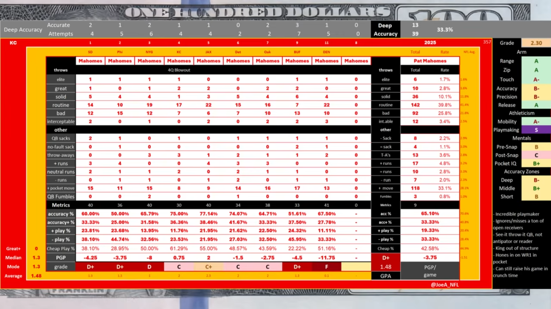 Mahomes 2/1 (2 wins where he wasn't carried / 1 loss with a top 8 defense)