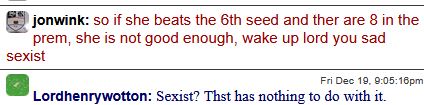 >>152564323Earlier this tournament I wrote about a big symphony of failure surrounding those two, this is just another note:>Many players, and now even his ex, dab on him, showing that there's very few sympathy on the tour for him >she also makes herself look worse, because it adds to the whole pleb image: Now she's not only a chain smoking single mom, but she shows also a lack of tactfulness, going for the cheap laugh.It's like a jigsaw puzzle, and every new piece fits right in.