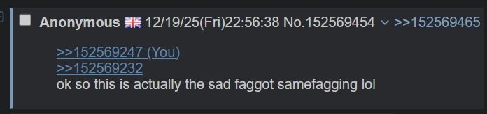 >>152569247>>152569232ok so this is actually the sad faggot samefagging lol