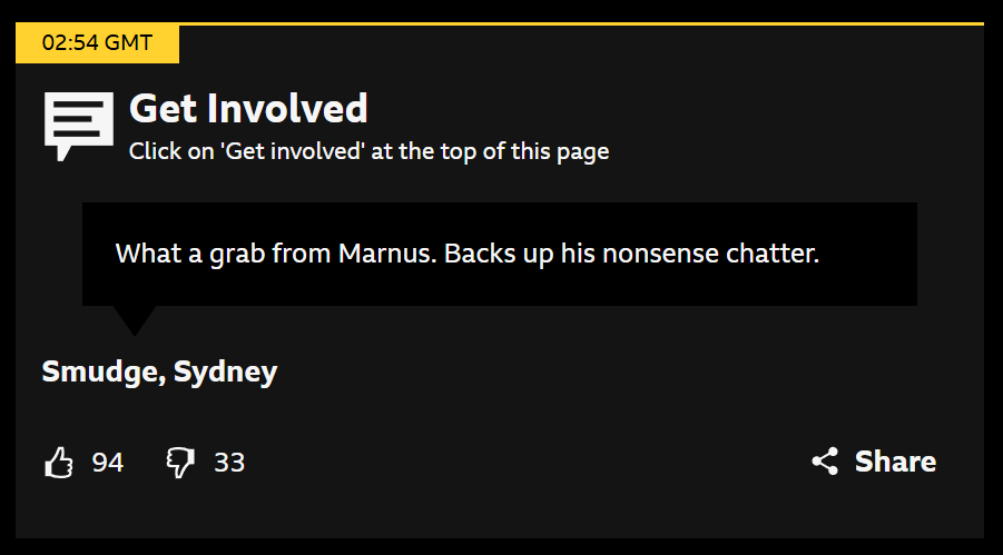 >>152573555Imagine Tony Grieg and Bill Lawry commentating this