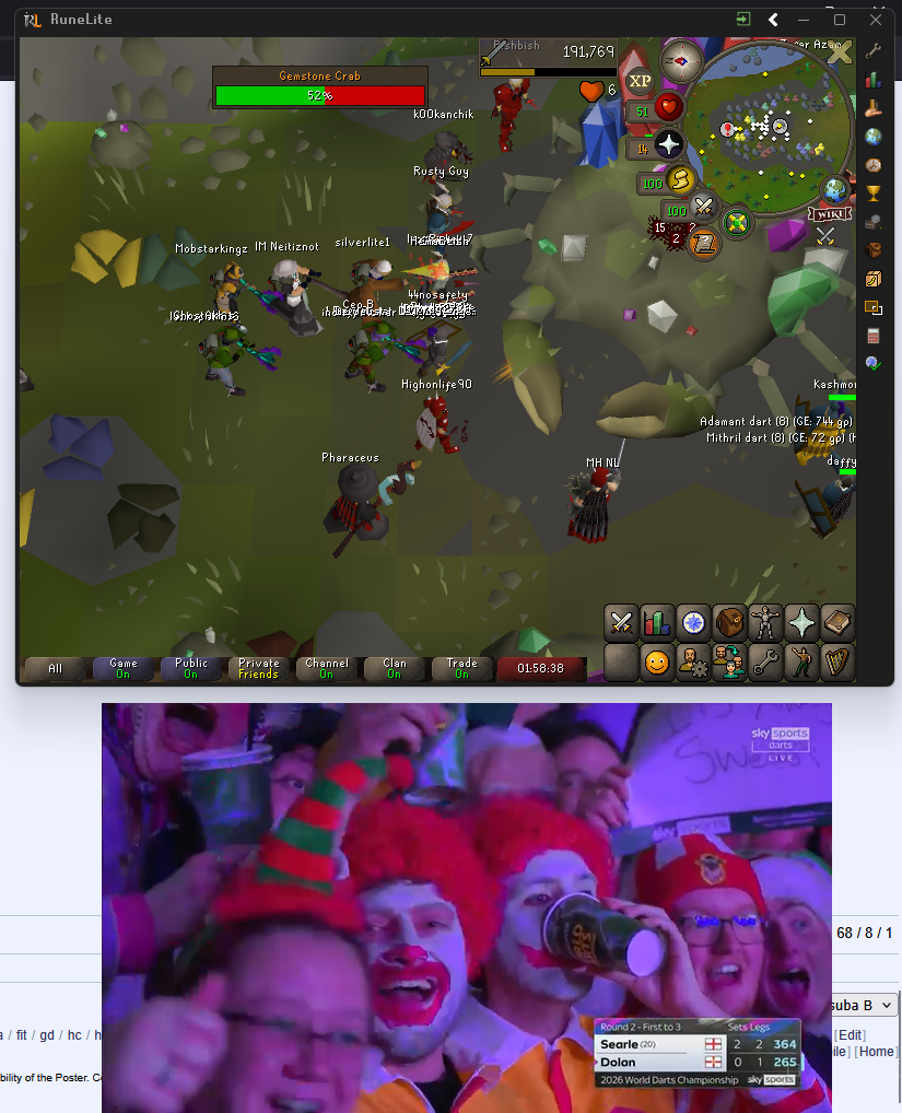 >>152581949Yeah I was at a mate yesterday evening watching the darts and he said he plays osrs on the side